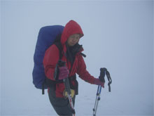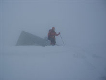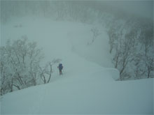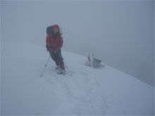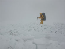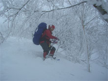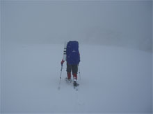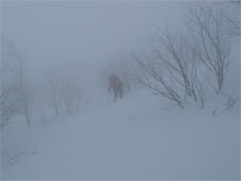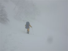 | 視界の利かない中を・・・ | 時には、GPSで確認しながら・・・ | 雪庇を気にしながら・・・ |
