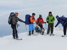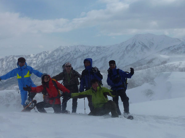 | 初雪山をバックに黒菱山頂上で・・・ |