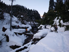 食事処(鞍部)発が午後2時。大鷲山への登りを見上げると、「えぇ~っ」 となるが、焼山に戻るとなると、それどころではない。でも、長勢・岩城君達は凄かった。あっという間に大鷲山に到達したのである。心配した大平集落(車デボ地点)には、余裕をもって降りる事が出来た。(午後4時)