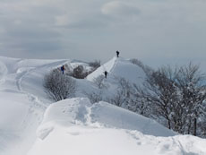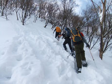 そこまでは私の役で、ルートは若い衆に任せておけばと思っていたら、「大鷲山」 に 「黒菱山・焼山」 がプラスされた。いっぺんに三座を登る事が出来れば最高であるが、一昨日のトレースがあるというものの この時期であるから、一抹の不安がなかったわけでもなかった。