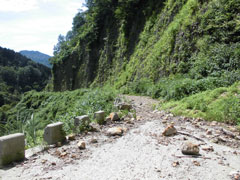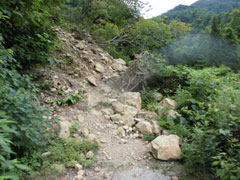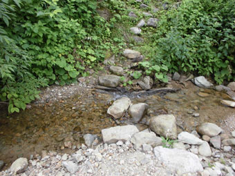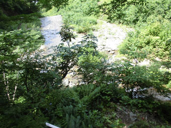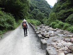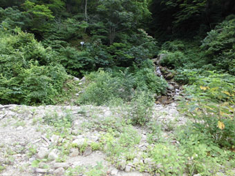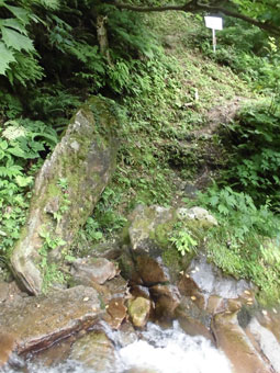 笹川の右岸を行くのであるが、1時間半も歩かなければならない。ゲートもあった。歩き始めて、すぐに蛇に遭遇。トカゲもであるが、熊もいるようである。白骨化した鹿と思われる頭蓋骨や背骨などが散乱していたし、ずっと、笛を鳴らしながら歩かなければ気味が悪い。