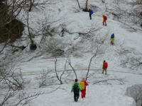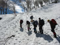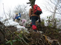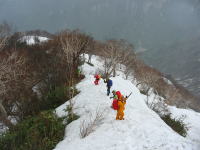 「シュンちゃん」と筏井さんに偵察を頼み、「登頂組」と「待機組」に分かれる案が出たが、不慮の事故や思いが別々になるのもいかがなものかと、安全を期して11時10分、1750m付近で撤退する事になる。