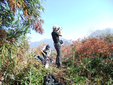 クズバ山は、確かに急登であった。切り株が臑を結構傷付けたし、終始小枝類につかまる事から、鍛えていない腕が痛くなってしまった。しかし、山頂からの展望は、クズバ山でしか見られないステキなものであった。その山容は、大熊山から眺める形と似て、それを、ずっと手前で見る感じに、私には受け取れたのですが・・・・
