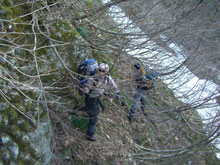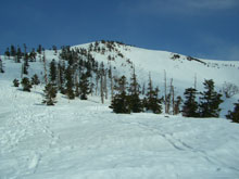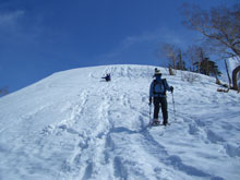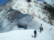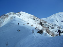 鞍部からの急斜面を降りる。 |