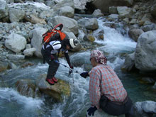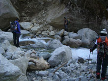 | コット谷途中で休息。 |