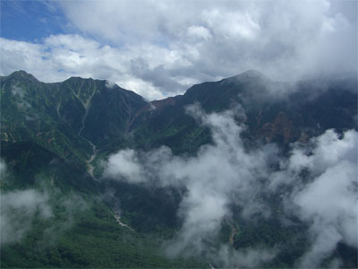 それでも、1時間程展望台に留まっていると、竜王岳・鬼岳・獅子岳・鷲岳・鳶山が、ガスを払い除けるように、姿を現した。その時間は短いものであったが、獅子岳と鷲岳の間に、ザラ峠がはっきりと確認出来た。昭和44年の豪雨で、旧立山温泉までの登山道が廃道となったようであるが、遠いロマンを、ちょっとだけ感じたような・・・