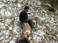 | 大きな倒木に腰掛けて休憩 |