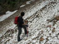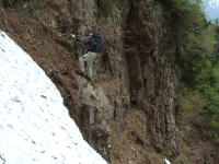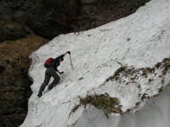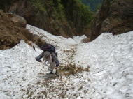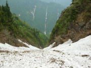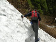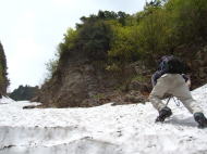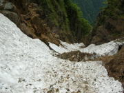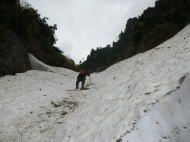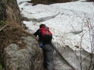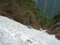 雪渓を避けてヘツル |