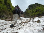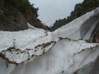 雪渓に近づく |