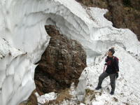 大きく割れたクレパスを見上げる |