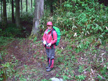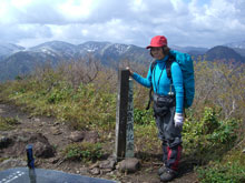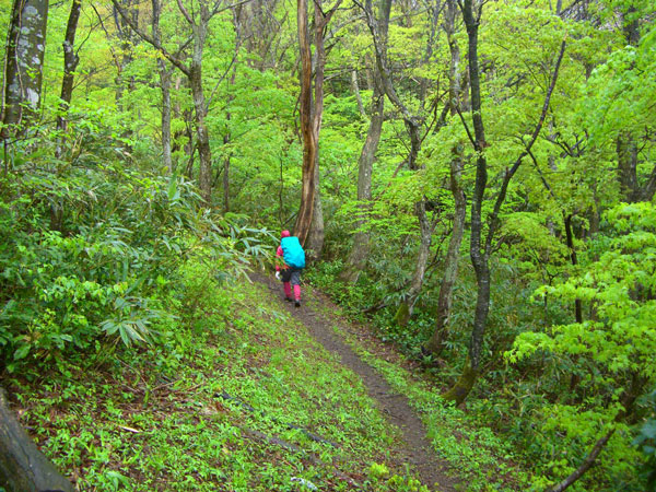 この山域で山菜を採った事がなかったが、登山道を10分も歩かない内に、山ノ神が、ネマガリダケの中に突入! いつの間にか私も追随してしまった。「まだ早いかな!」 と思っていたススダケをゲットして頗る満足。これでほぼ目的を達成したと思う山ノ神であったが、私はやはり山頂に拘る。例え低い山でも頂に立ちたい。立たなければ山に行った(登った)気がしない。