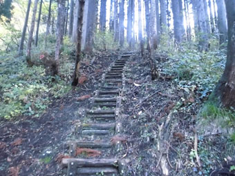| 杉林の中の階段。 |