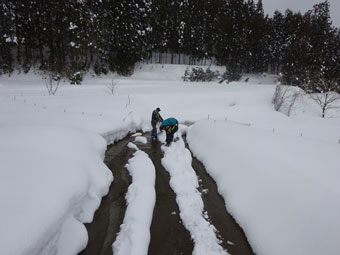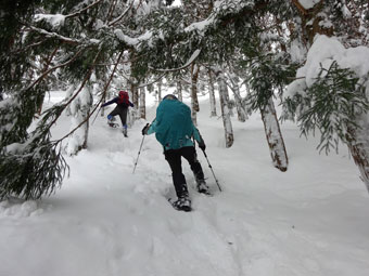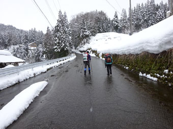 スノーシューを外して西種集落へ・・・ |