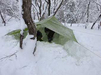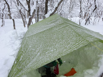 | 僅かでも、タープを張れば暖かい。 |