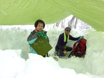 雪が固まらず、崩れやすく、結構苦労したのです。