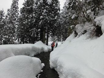 | 消雪のための流水が勢いよく・・・ |