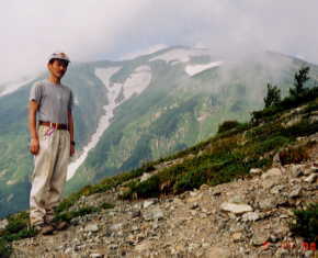 少し行った所に「朝日岳7.1キロ、蓮華温泉4.5キロ」の標識があり、そこで、朝日岳山頂附近でビバークしていたと言う重荷を背負った中年の人に出会った。お互いに「この先長いよ!」の言葉を掛け合った。今日、最初に出会った人である。