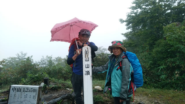 登山口10:20=1100m付近(10:25~55)=中山頂上(12:20~13:00)=登山口14:15