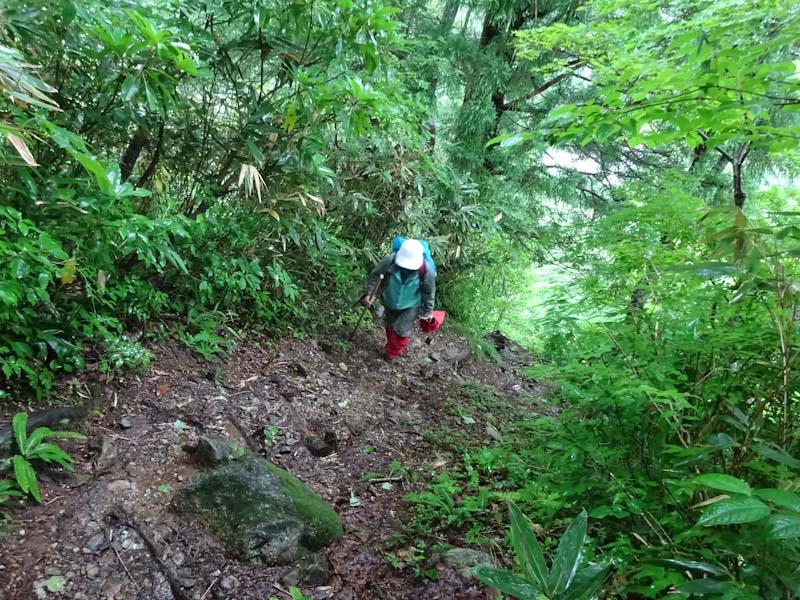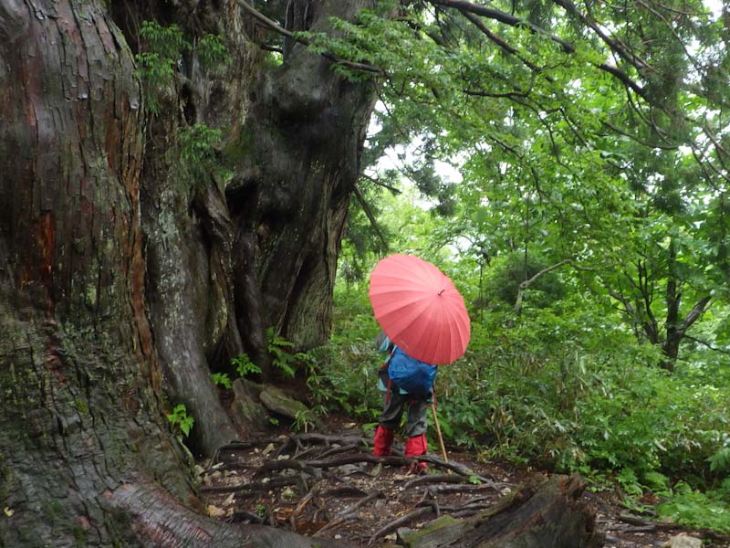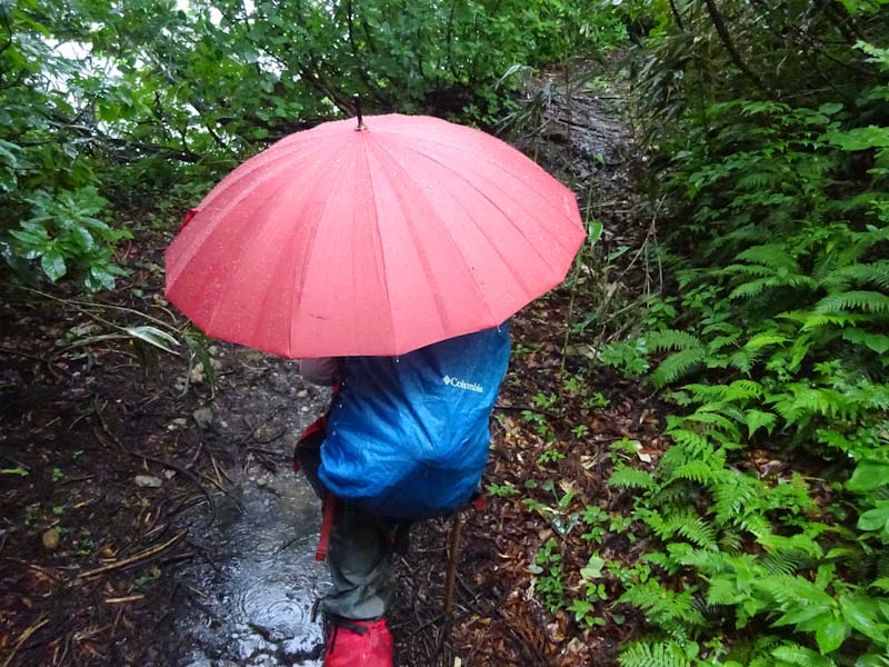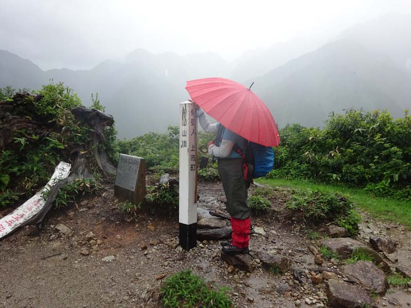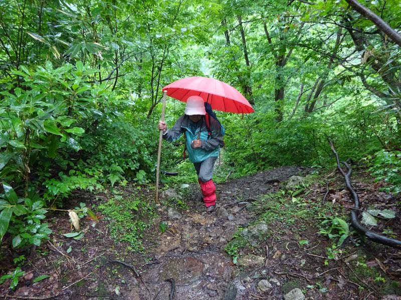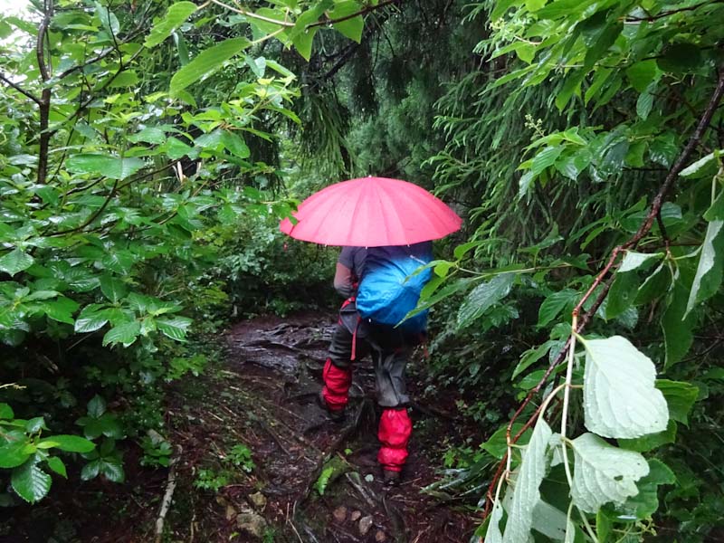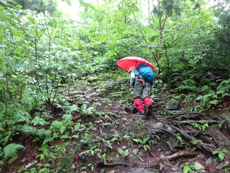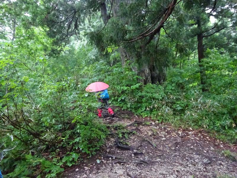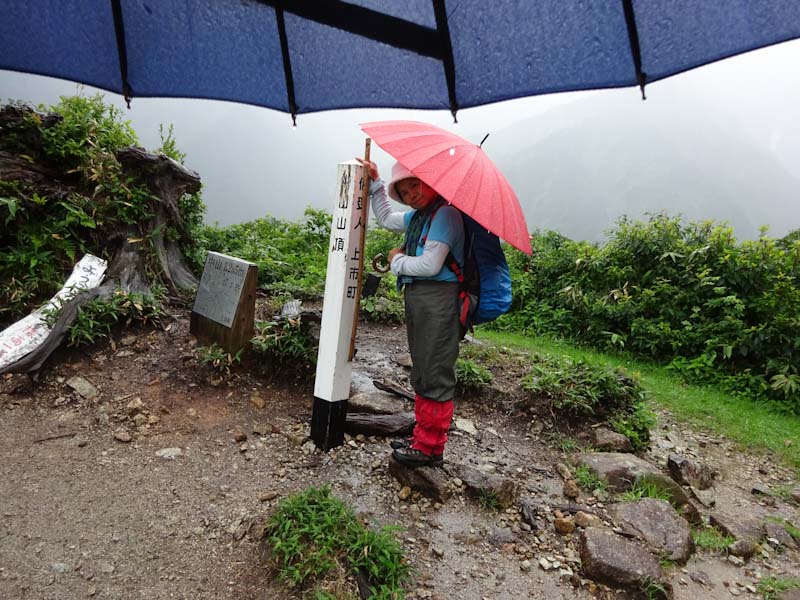 そんな中に、3人パーティーが上がって来られた。全くの空身である。少なくともお二人は、山に登られて間もない方のように見受けた。でも、「雨具は思ったより快適です。」 と言われたのだから、きっと山に嵌ってしまわれるのだろう。上がって来られる時、思わず 「あんたらち、雨降っとるがにバカやね!」 と日頃言われているセリフを言ってしまい苦笑いをしてしまった。