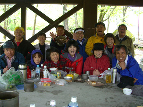 中山で、初めてシラネアオイを見た。ニリンソウの群落も見た。コシアブラやススダケもあった。ワイワイ言いながら、ゲストを含めた13名のメンバーは、皆楽しそうであった。馬場島では、究極の立食パーティーとなり、寒さを吹っ飛ばすものとなった。後、元気者8名が千石城山にも立った。