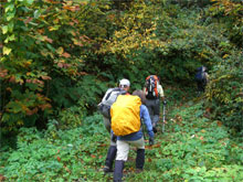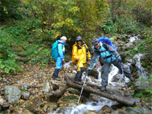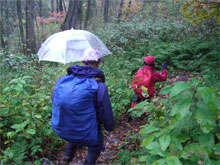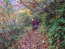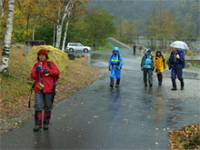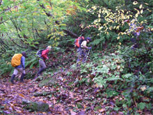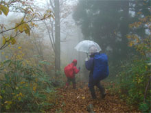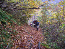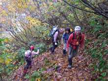 周遊コースが初めてという北ちゃんに、「本当ですか?」 と問いながら、濡れた落葉を踏み締めて立山川側へ、それこそ、山の味を充分に満喫しながら降りた。登山口到着は、予定通り午後2時となり、今夕行われる懇親会まで、各々用事を消化するために散っていった。