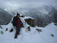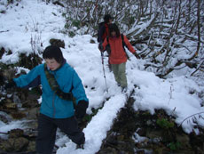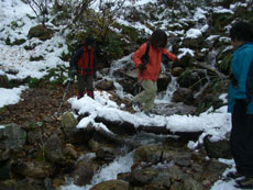 彼女らの初めての登山(初めてに近い登山)に雪が付いたわけだが、別世界に来たかのようであった。そして、「ハッピー」 と言った。何だか嬉しくなって、周遊コースに誘ったら、「行きたい。」 と返って来たから嬉しくなる。彼女らの親のような年齢ながらも、気持ちは一緒! 「キャーキャー」 言いながら立山川に降りた。