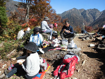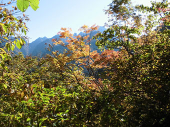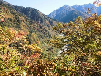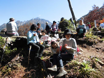 周さんや池田氏、そして、魚津の神谷夫妻、枡天の大将、山頂でシャッターを切ってくださった人(名前を聞くのを忘れてしまった。)など。そして、サブちゃんあきちゃんコンビとも・・・ 何と言っても、晴天で見渡す山々の紅葉と青空のコントラストは素晴らしかった。