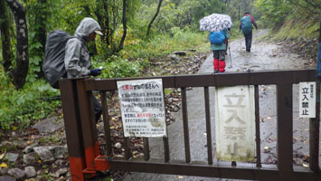 10/14 昨夜の内に七姫山と連絡が入っていた。でも、雨である。好山病では、変更があっても中止がないという伝統?がある。ちょっと遅いような感じであったが、午前8時アルペン村に集まった。変更を匂わす小さな声もあったが、完全に揉み消され七姫平(旧・クムジュン手前)に向かった。