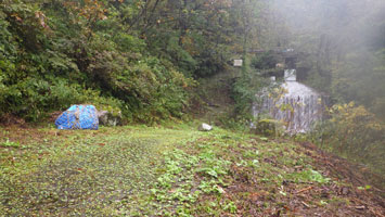 最も、今回の山行に関して、事前に「山ノ神」でも大丈夫かと打診していた。「登山道は刈ってあるから。ゆっくり行きましょう。」 との返事を北ちゃんからもらっていた。そんな事もあり、北ちゃんは、責任を感じてくれていたに違いない。お陰で私は後ろから傘を差して見ていただけであった。でも、タープ内に入った時にはホッとしたのが正直なところ。