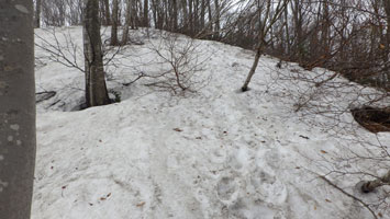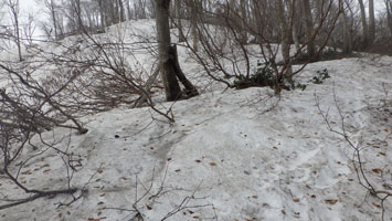 山頂近くの雪の状態です。