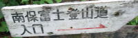 分岐には南保富士登山口の標識があり、右に誘導してくれ、50~60m歩く左手に登山道が現れる。