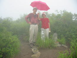 頂上に着いてから、雨具を着るほどでなかったが、やはり雨が落ちて来た。展望もなく、ただ登っただけの南保富士であったが、広葉樹が多く紅葉時にまた登って見たいものである。