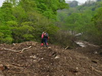 | 洞杉?の所で駐車する | 新土倉橋を渡る | デブリを乗り越えて | 南又発電所を対岸に見ながら |