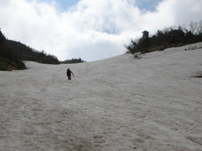 最後の急登、力を振り絞って・・・ | コルには大猫山から既に 長勢君がやって来ていた |