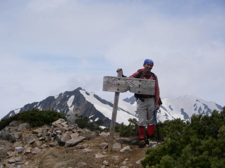 | 釜谷山・毛勝山をバックに猫又山頂上で | 剱岳方面をバックに猫又山頂上で |