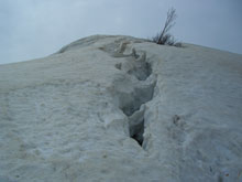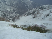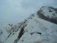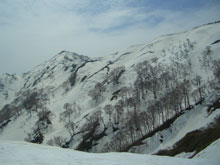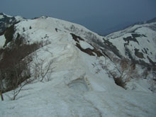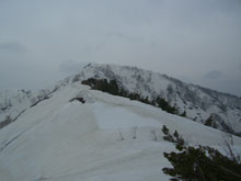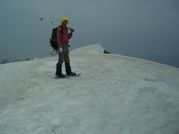 高岡5:50=登山口(7:15~40)=1100m(8:15~20)=1465m(9:10~15)=宮屋敷跡9:30=分岐10:05=人形山頂上(10:25~40)=分岐10:50=三ヶ辻山頂上(11:30~40)=分岐12:05=梯子坂(12:10~30)=宮屋敷跡12:55=春木山(13:05~25)=宮屋敷跡13:35=1290m(13:55~14:00)=スノーシュー脱着14:15=登山口(14:40~15:00)=高岡