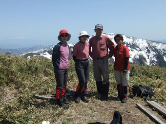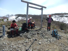 | 三ヶ辻山をバックに山頂で・・・ |