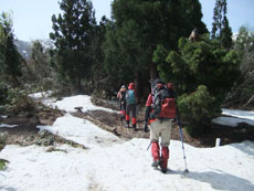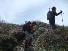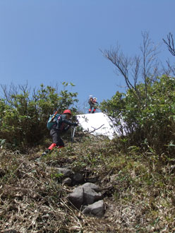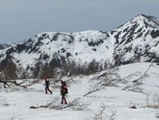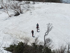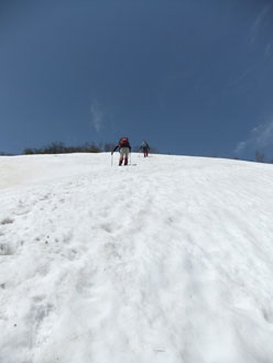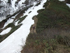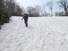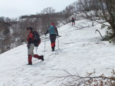 雪の付いた斜面を行く。 |