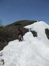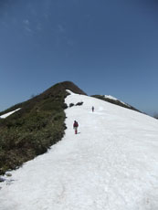 雪を伝って山頂へ。 |