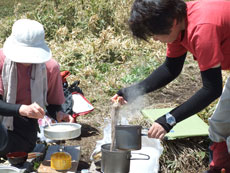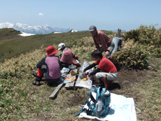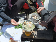 | 山頂での食事が始まる。 |