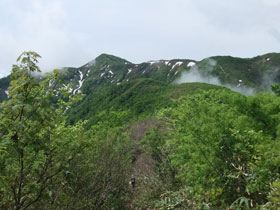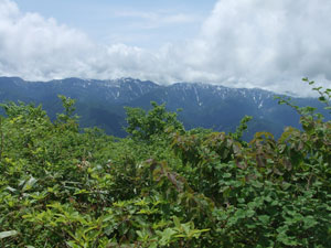 | 笈ヶ岳と大笠山 | これから向かう人形山を望む。 |