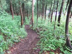 | 登山口 | 杉林の中の登山道。 | 第一休憩所まで大汗を掻いた。 |