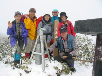 | 人形山頂上で記念写真 |
