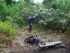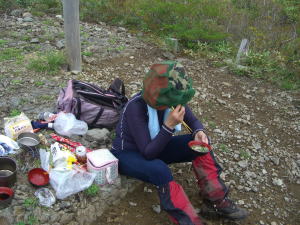 この時ばかりは荷を置いて行った。始めは50分の猶予が欲しいと言っていたからであろうが、その時間内で戻ったものだから、山の神は慌てた。密かに隠し持っていた飲み物が、中途半端になってしまったのだからたまらない・・・ 「飲む・・」 などと極まりが悪そうであったが、それよりも、こちらは、「腹減った。」 であった。