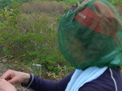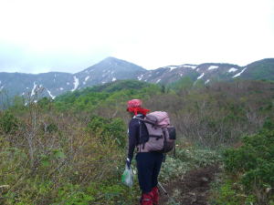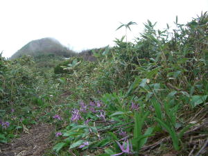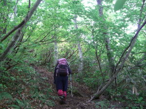 ちょっぴり、ワイパーを回しながら、我が家を出発したのが、午前7時半。人形山登山口を出発したのが、午前9時半。ところが、20分もしない内に、山の神がワラビを見付け、杉林の中へ・・・ 私のリックの半分以上の重みが、ワラビとなって再出発となる。第1休憩所午前11時。