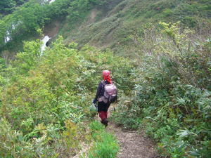 欲張りばあさんと、欲張りじいさんは、益々荷を重くし、宮屋敷跡を出たのが、午後4時40分。採り残した太いワラビを採らなくてはならぬと、山の神のピッチが上がる。では、昨日の大日岳からの下りは何だったのか・・・