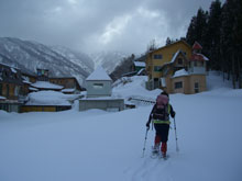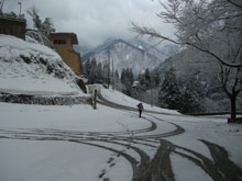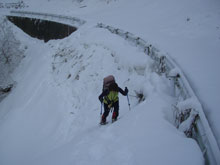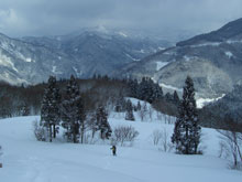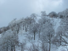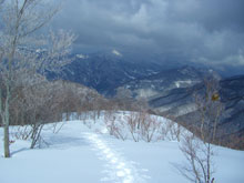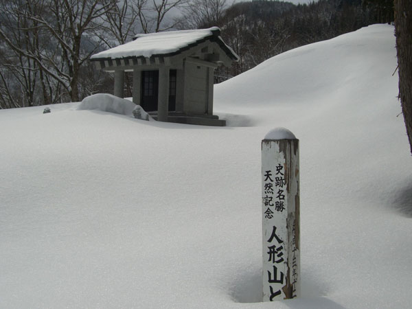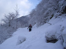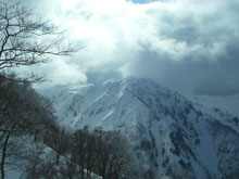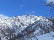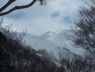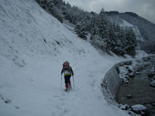 3/2 旧城端町・大鋸屋から五箇山トンネルへの長い坂道では、除雪車が出動していた。予想していたとは言え、田向・五箇山荘下駐車場からの長い長い林道歩きが始まった。「林道歩きは、苦にならない。」 という山ノ神の言葉を信じていたが、登山口に着いた頃には、疲労が現れてきたようであった。(3時間を要した。)
