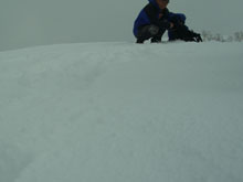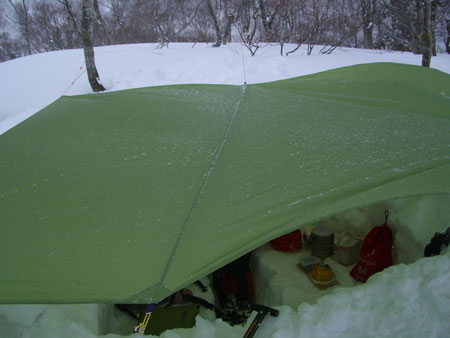 これでは、確実に4時間で息絶えてしまう。山頂がダメなら、春木山までの思いがあったが、またまた、リタイヤとなってしまった。1288m付近で、シェルターを造り山ノ神を待機させる事とし、私が、「その後の持ち時間で、何処まで行けるやら!」 となったのであるが、無理する事もなく、宮屋敷跡までとした。