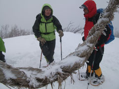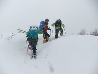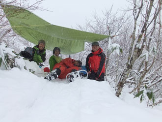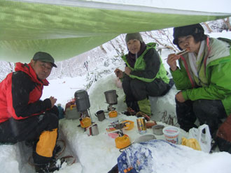 でも、今年初めての本格的雪上歩きに大満足?だったからか、風が吹き抜ける食事処でも話が弾んだ。新旧二人の山友(イマイチ女史・周さん)に感謝!