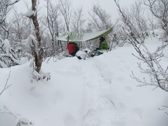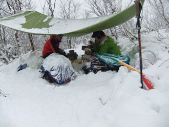 ~ 雪量がなく、テーブル作りに苦労する。でもホッとした一時でもある。 ~